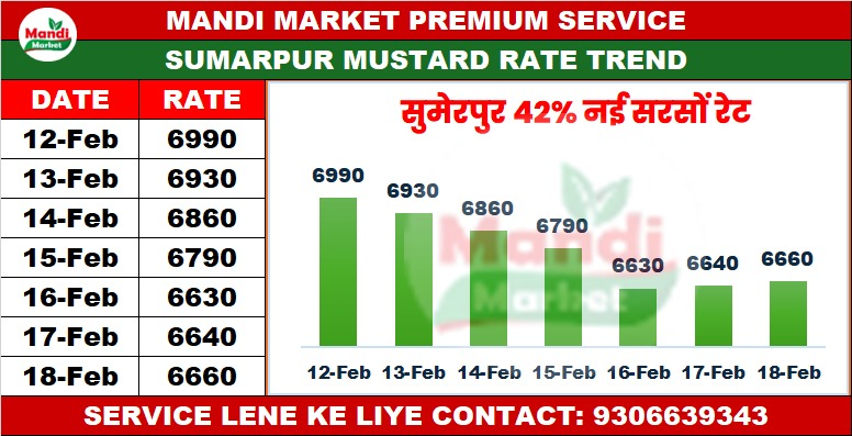 सरसों 42% कंडीशन भाव ₹ 6650 तेजी 10