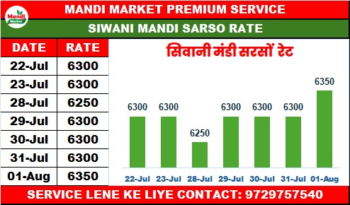 सिवानी मंडी तेजी मंदी के साथ लाइव रेट 1 अगस्त 2025