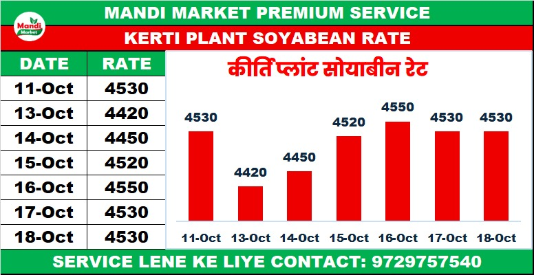 धीरेन्दर सोया, नीमच (DHIRENDAR SOYA, NEEMUCH) भाव ₹ 4560 (नया ₹ 4510)