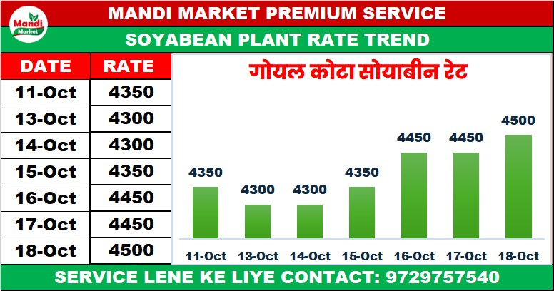 सोयाबीन भाव ₹ 4500 तेजी ₹ 50