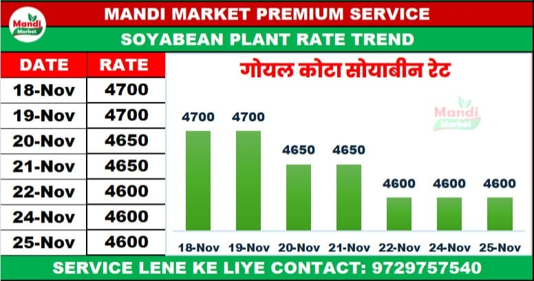 सोयाबीन भाव ₹ 4200/4550 मंदी ₹ 75