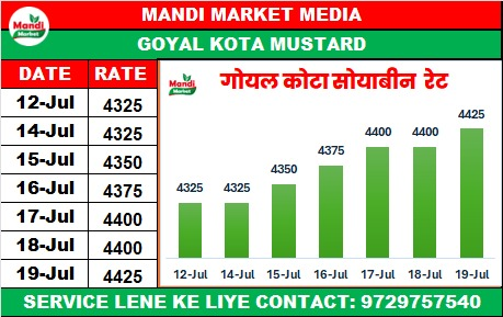 सोयाबीन (SOYABEAN) भाव ₹ 4425 तेजी ₹ 25