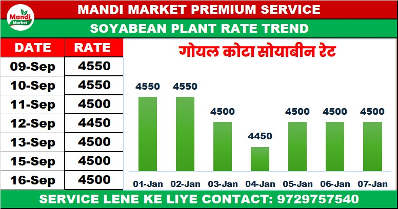 सोयाबीन भाव ₹ 4200/4350 तेजी ₹ 50