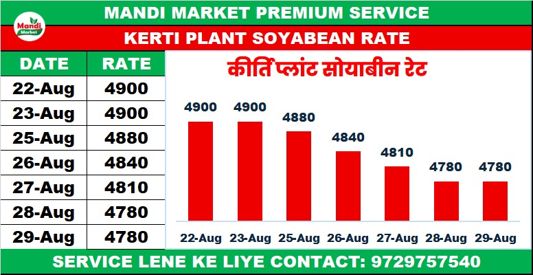 4800 के नीचे गया कीर्ति प्लांट पर सोयाबीन का रेट | जाने बाकी मंडियों और प्लांटों पर क्या भाव बिकी सोयाबीन
