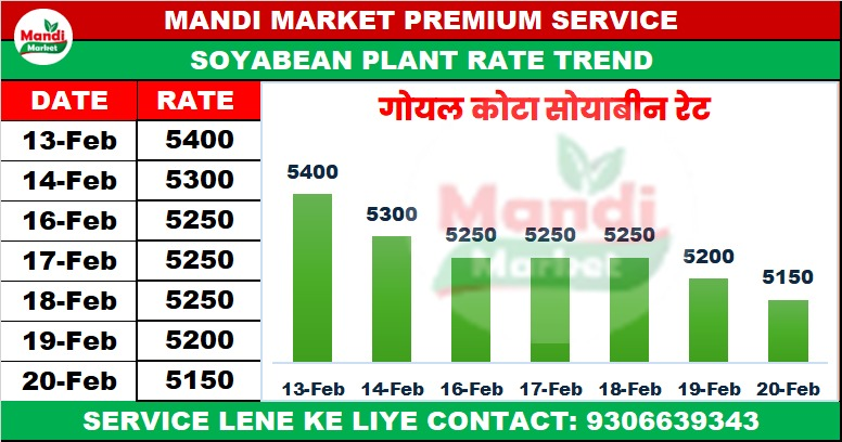 सोयाबीन के दामों में सुस्ती | मंडियों में कारोबार धीमा, जानें आज के ताजा रेट 20 फरवरी 26