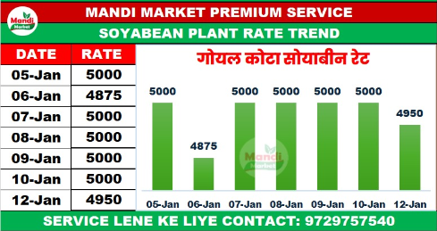 सोयाबीन भाव ₹ 4950 मंदी ₹ 50