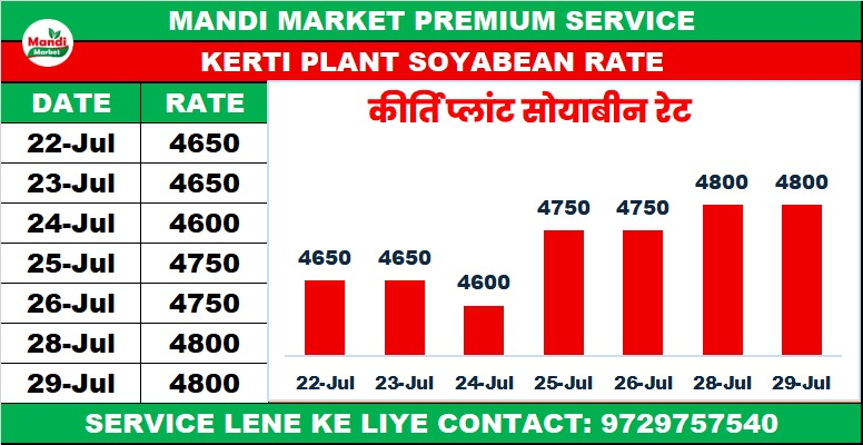 लातूर प्लांट सोयाबीन भाव ₹ 4800 तेजी ₹ 30