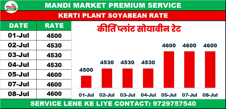 सोयाबीन भाव ₹ 4625 मंदी ₹ 50