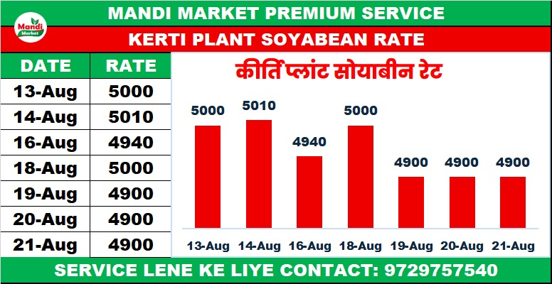 सोयाबीन भाव ₹ 4,300/4,600 मंदी ₹ 20