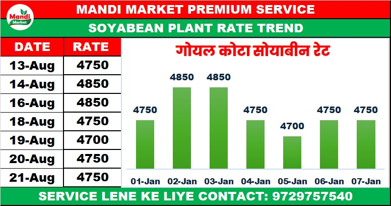 सोयाबीन भाव ₹ 3800/4700 स्थिर