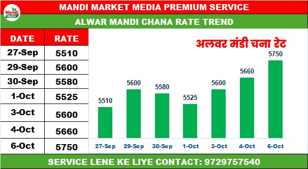 चना भाव ₹ 5400 से ₹ 5650 तेजी ₹ 50