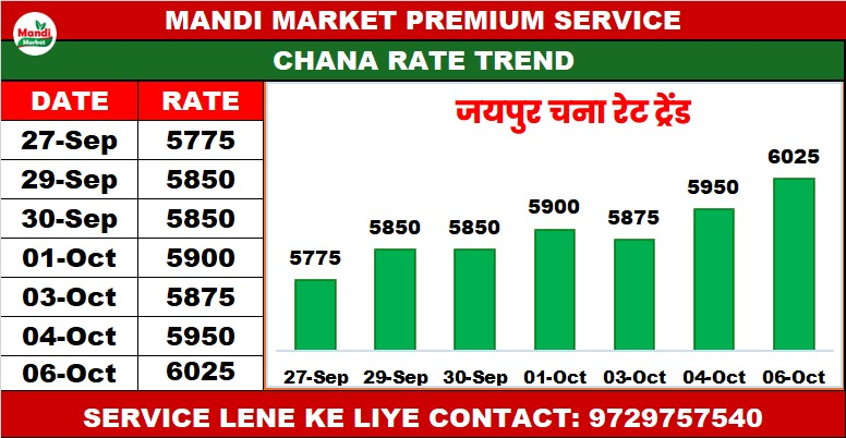 चना भाव ₹ 5875 से ₹ 5900 तेजी ₹ 100