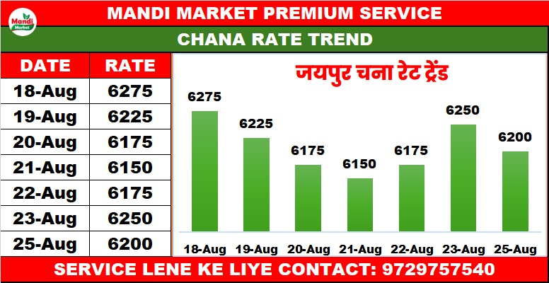 चना भाव ₹ 6050/6075 मंदी ₹ 25