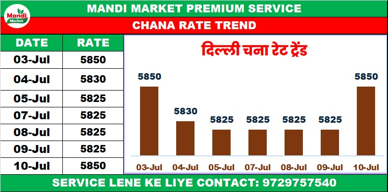 चना काँटा (CHANA KANTA) भाव ₹ 5825 से ₹ 5850 तेजी ₹ 25