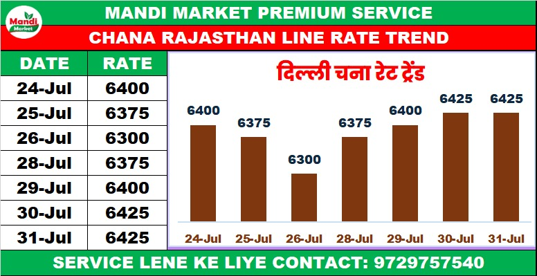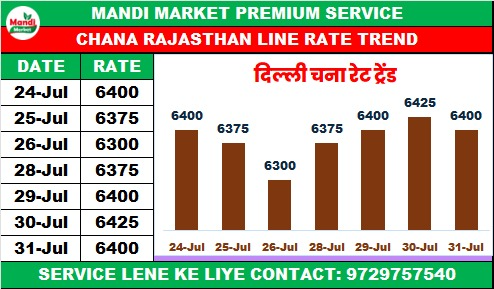राजस्थान जयपुर लाइन चना भाव ₹ 6400 से ₹ 6425 स्थिर