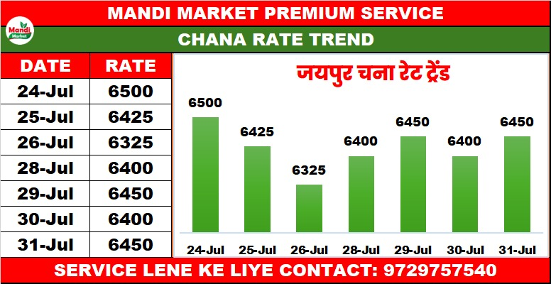 राजस्थान जयपुर चना भाव ₹ 6375 से ₹ 6400 मंदी ₹ 25