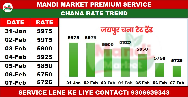 चना भाव ₹ 5000 से ₹ 5731 मंदी ₹ 100 ↓
