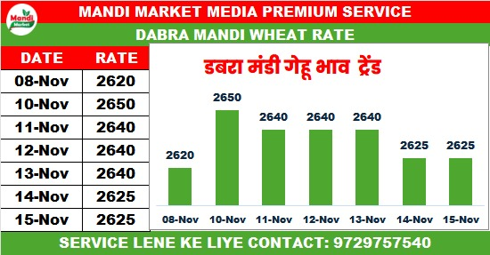 गेहूं मिल डिलीवरी भाव ₹2640 मंदी ₹20