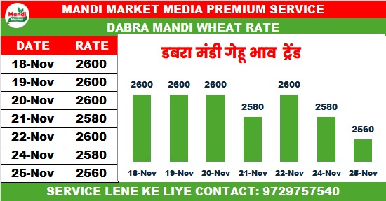 गेहूं बढ़िया राज भाव ₹2560 मंदी ₹20