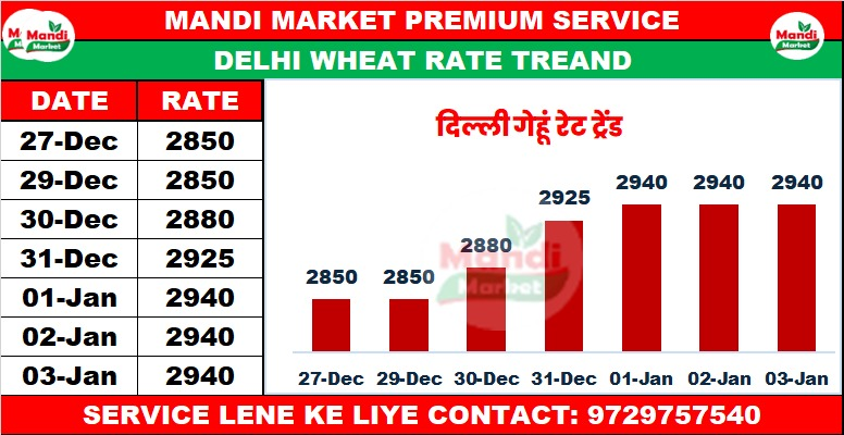 गेहूं 2% छूट भाव ₹2940 स्थिर