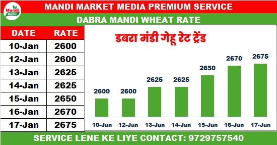 गेहूं बढ़िया राज भाव ₹2675 तेजी ₹5