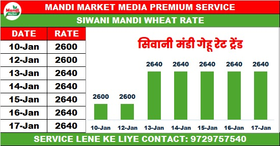 गेहूं मिल क्वालिटी भाव ₹2625 तेजी ₹25