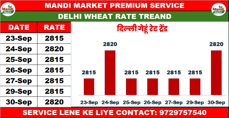 गेहूं भाव ₹ 2430/2440 मंदी ₹ 30