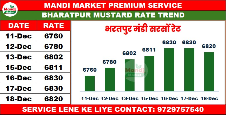 सरसों भाव ₹ 6820 मंदी ₹ 10
