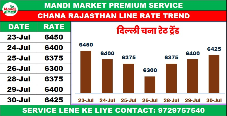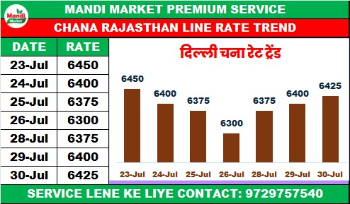 राजस्थान जयपुर लाइन चना भाव ₹ 6400 से ₹ 6425 तेजी ₹ 25