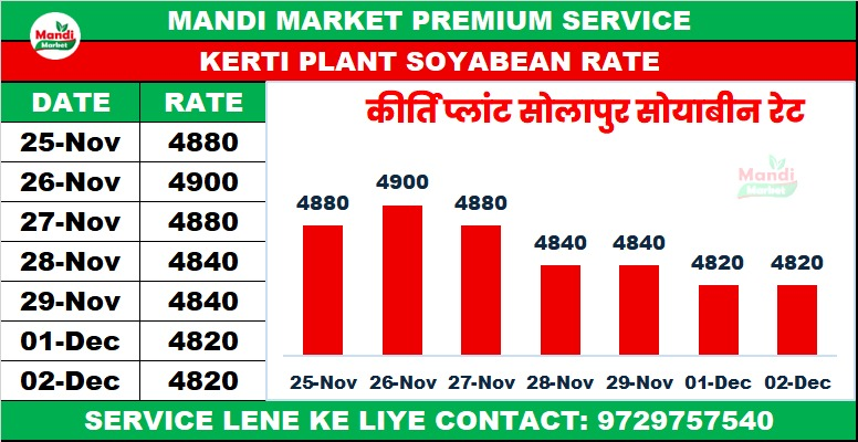 सोयाबीन भाव ₹ 4720 मंदी ₹ 0