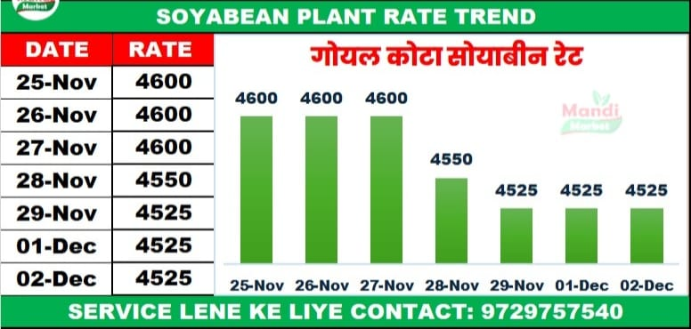 सोयाबीन भाव ₹ 4200/4550 मंदी ₹ 25