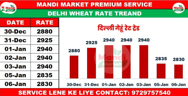गेहूं लोकवान भाव ₹2600/2800 मंदी ₹100