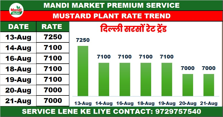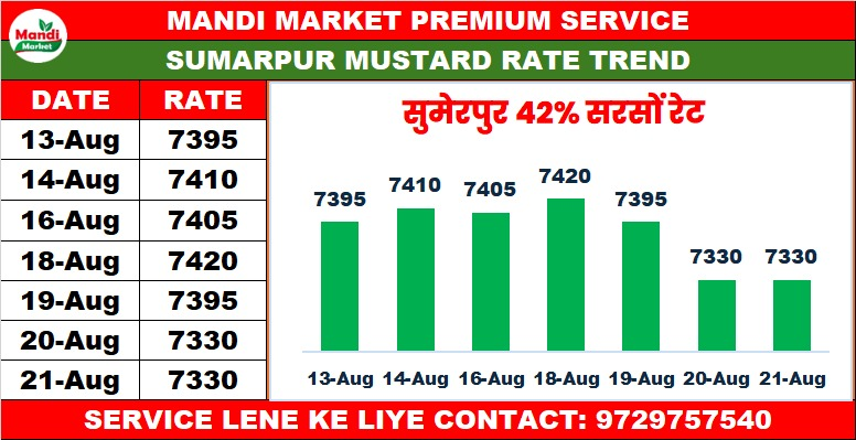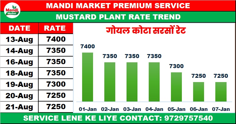 सरसों 42% कंडीशन भाव ₹ 7000 स्थिर
