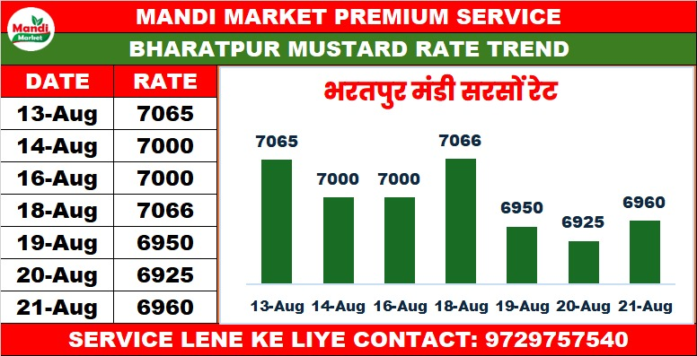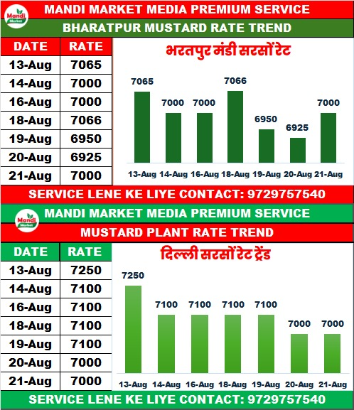 सरसों मण्डी भाव ₹ 7000 तेजी ₹ 50