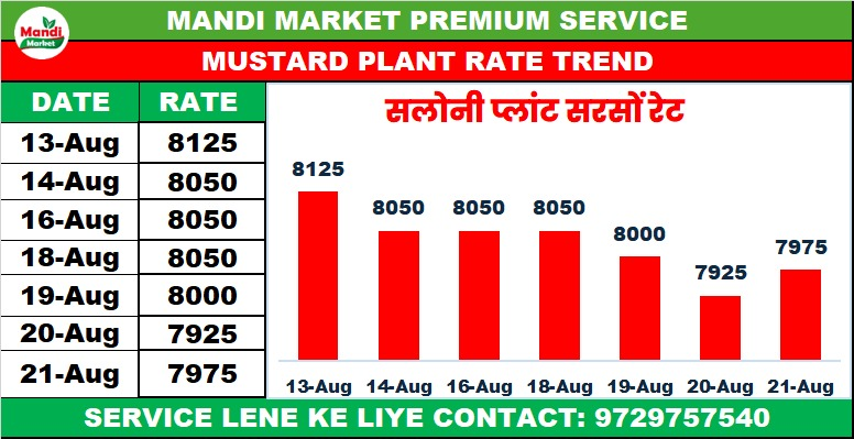 सरसों कंडीशन भाव ₹ 7100 स्थिर