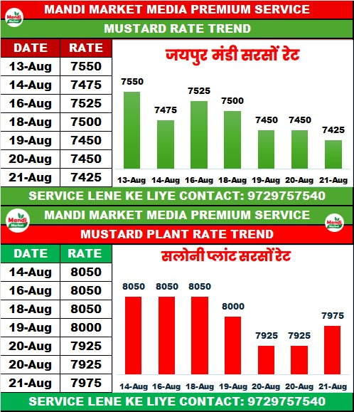 सरसों भाव ₹ 7200/7225 मंदी ₹ 25