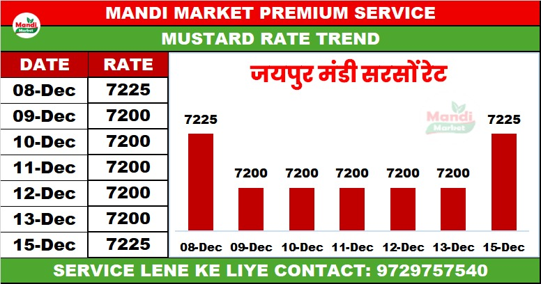 सरसों भाव ₹ 7200 / 7225 तेजी ₹ 25