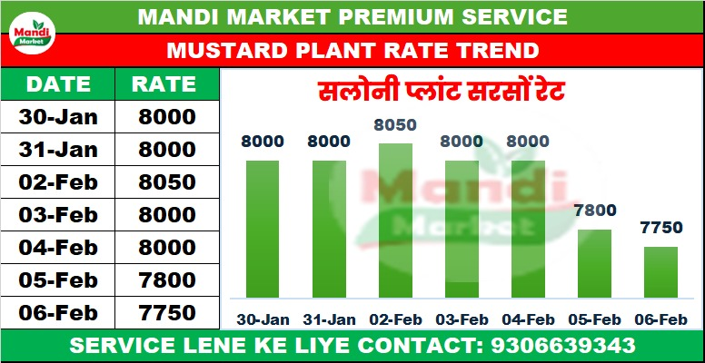 बीपी आगरा सरसों नई भाव ₹ 7500 मंदी ₹ 100