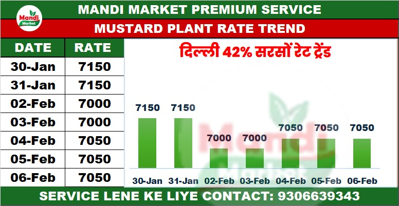 सरसों 42% कंडीशन भाव ₹ 7020 मंदी ₹ 30