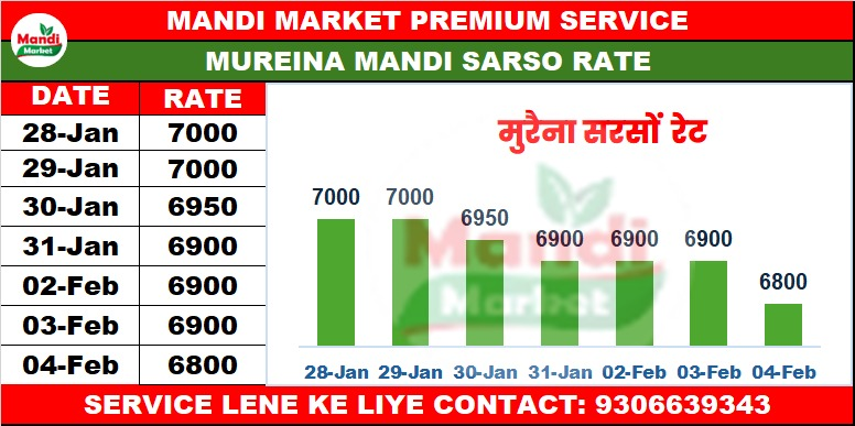 सरसों 42% कंडीशन भाव ₹ 6800 मंदी 100