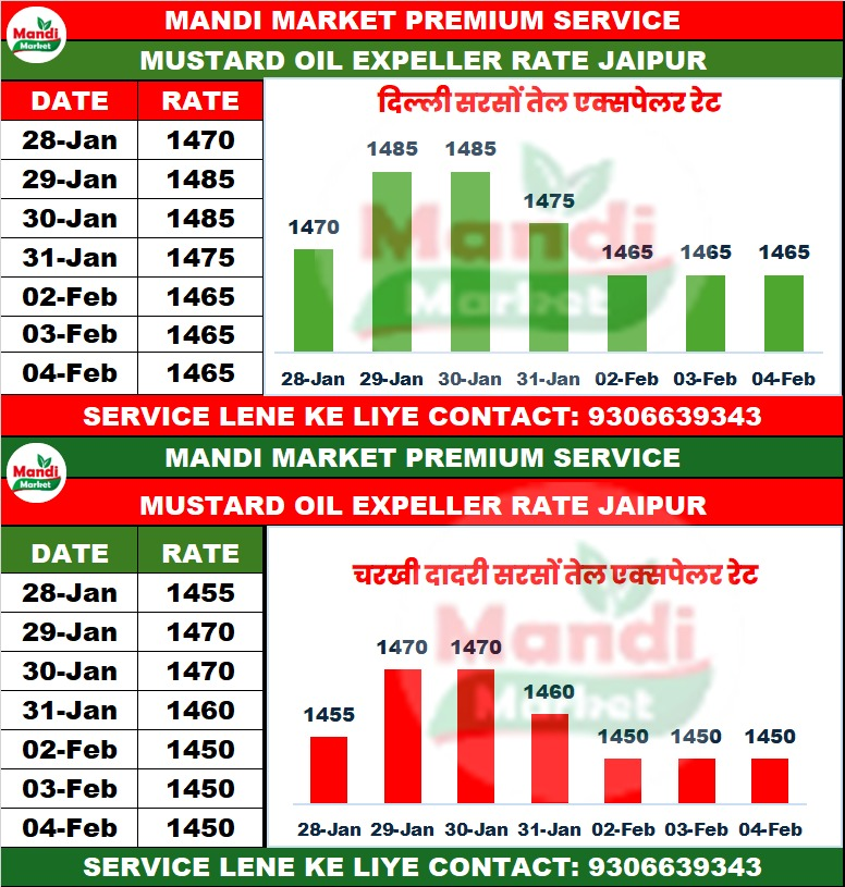 सरसों तेल एक्सपेलर भाव ₹ 1455 मंदी 5