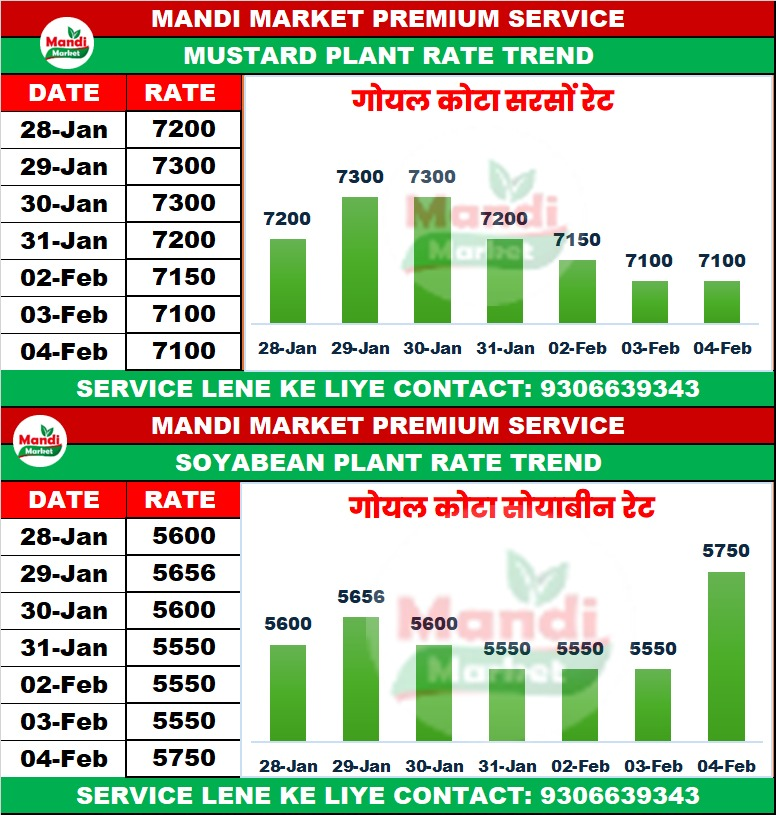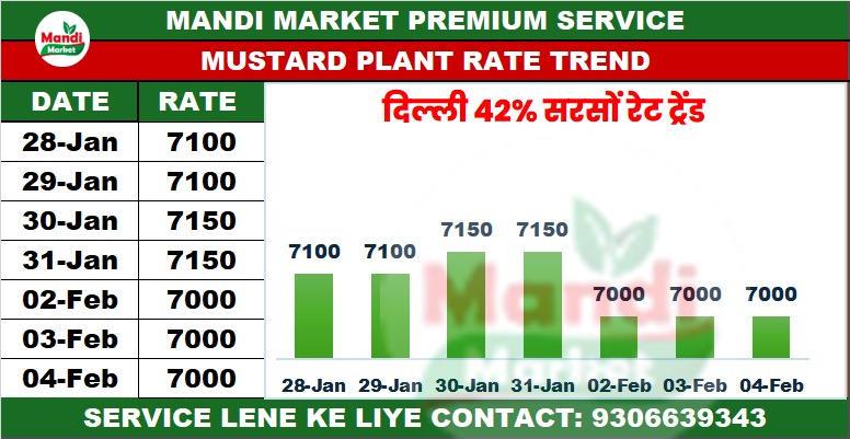सरसों भाव ₹ 7175 +GST (नेट पेमेंट 42%)