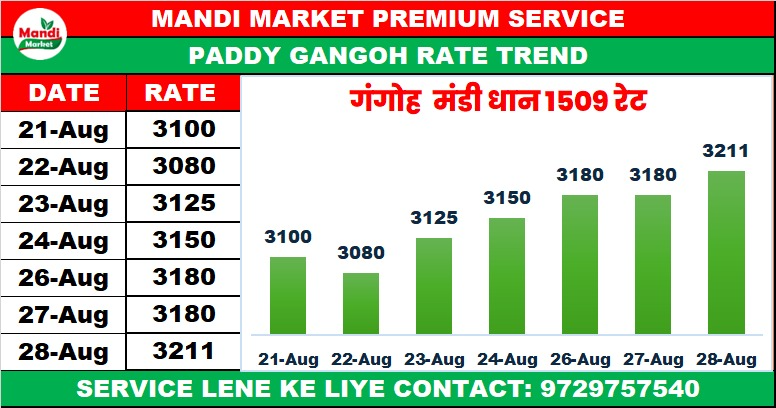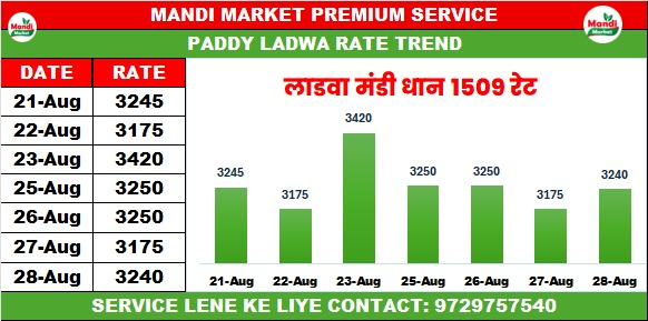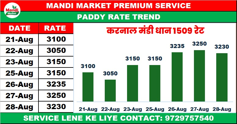 धान 1509 भाव ₹ 3211 तेजी ₹ 31