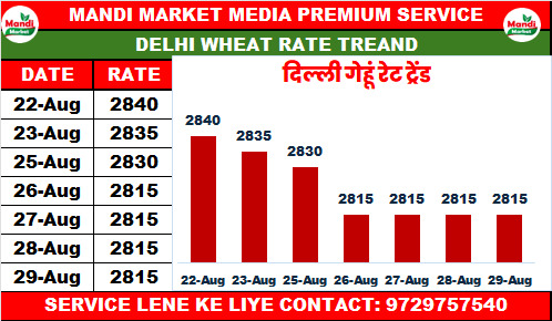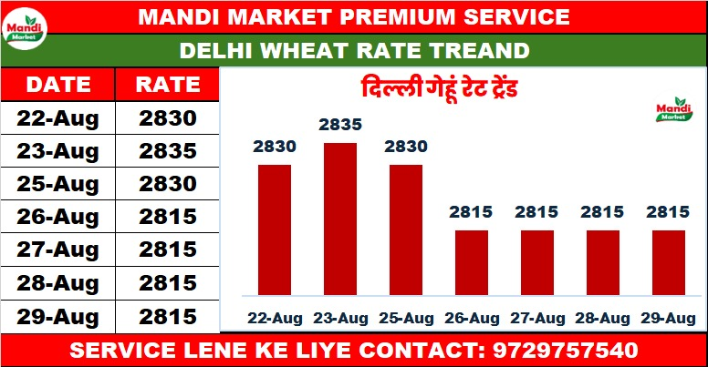राज लाइन गेहूं भाव ₹ 2815 तेजी ₹ 0