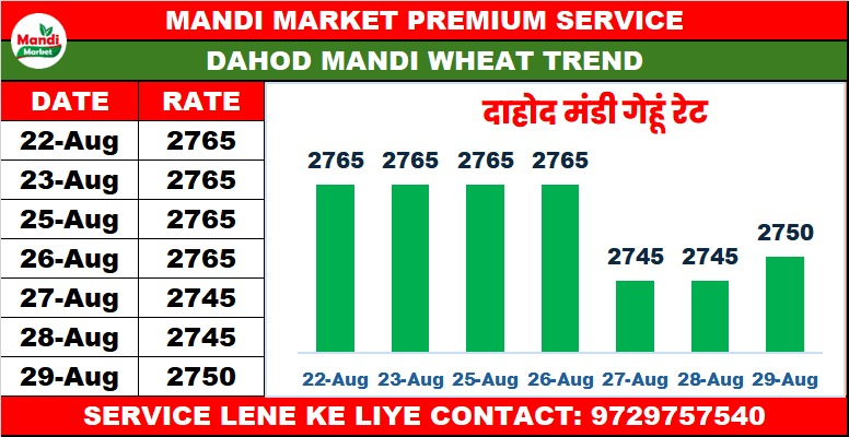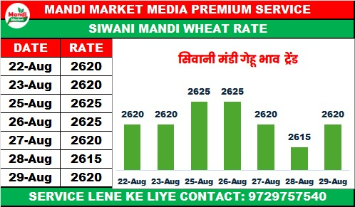 गेहूं मध्य प्रदेश मिल क्वालिटी नेट भाव ₹ 2700 स्थिर
