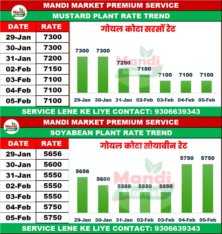 प्लांट भाव ₹ 5750/5850 मंदी ₹ 50