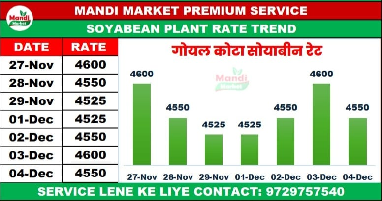 सोयाबीन भाव ₹ 4550 मंदी ₹ 50