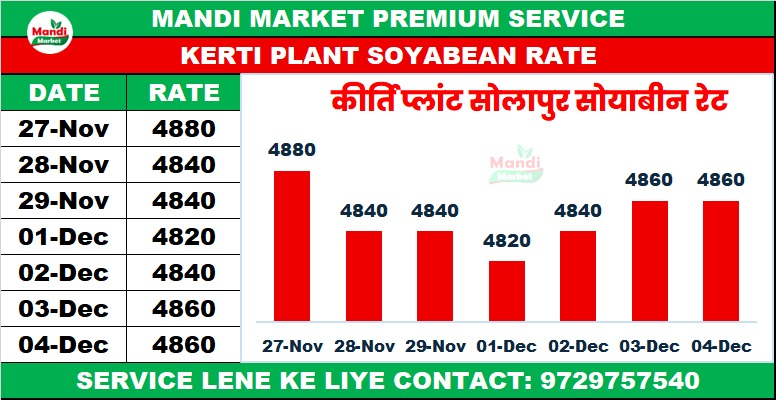 सोयाबीन भाव ₹ 4730 मंदी ₹ 20