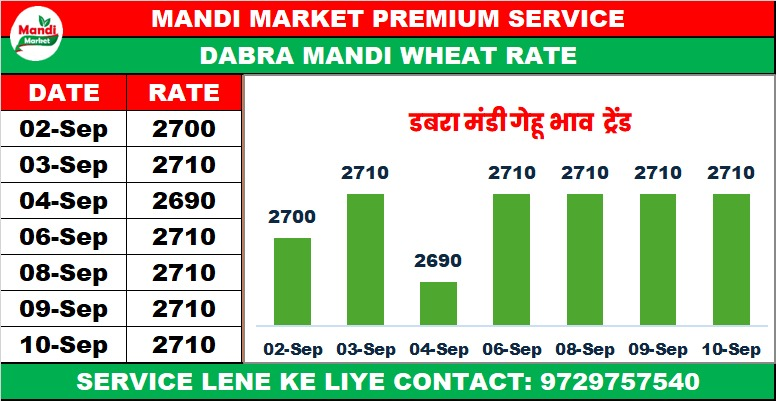 गेहूं मिल क्वालिटी भाव ₹ 2650/2700 मंदी ₹ 50