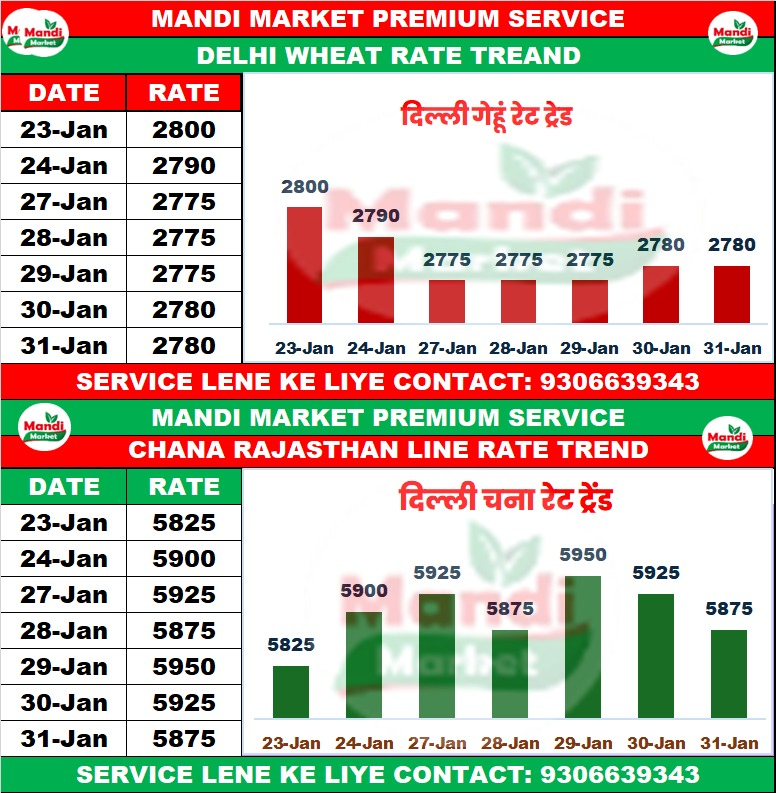 मिल क्वालिटी गेहूं भाव ₹ 2450/2460 मंदी 20